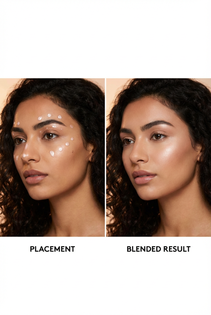 Those liquid highlighter dots need to be seamlessly blended. If you can see where they start and stop, you’ve gone too heavy-handed. Less is genuinely more here.