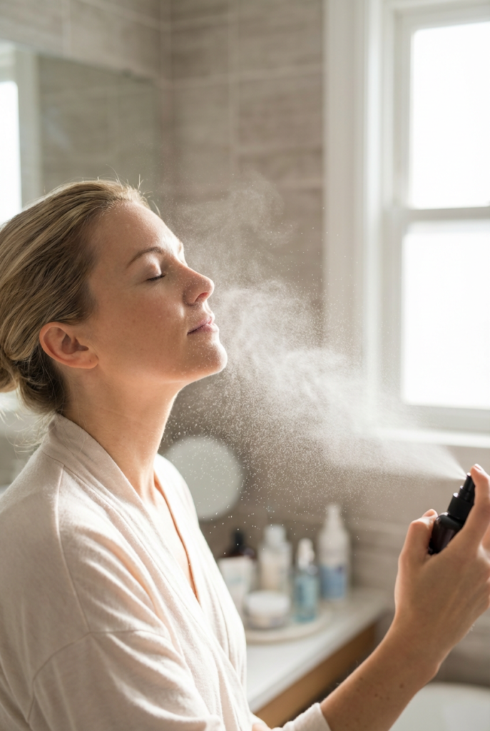 The final step is crucial—you need a setting spray that locks everything in place without adding texture or disturbing that perfect blur you’ve created.