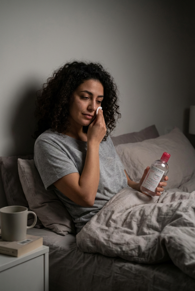 Prep for bad brain days: Keep face wipes or micellar water by your bed for nights when getting to the bathroom feels impossible. It’s not ideal every night, but it’s way better than sleeping in makeup or sunscreen.