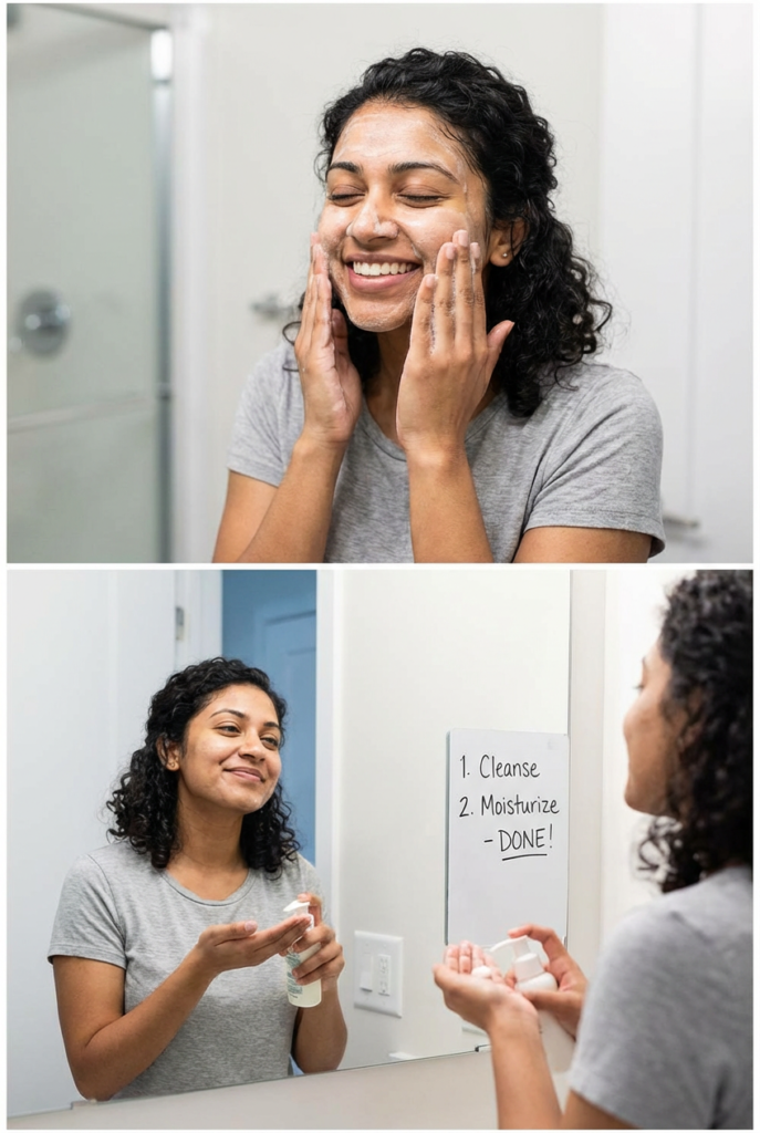 Start simple, choose products that don’t irritate your senses, create systems that work with your brain, and remember that some skincare is always better than perfect skincare you never do. Your skin doesn’t care whether you’re following the latest viral routine—it just wants consistency, sun protection, and basic care.