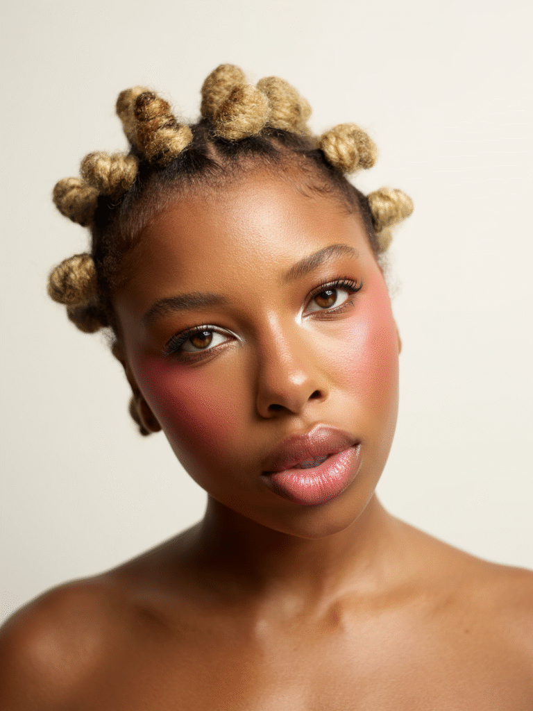 Apply a cream blush to the apples of your cheeks and blend it upward toward your temples. Focus on the highest points of your cheekbones for that lifted, youthful effect. If you want to add bronzer for warmth, use a cream formula and apply it lightly to the hollows of your cheeks, temples, and along your hairline.