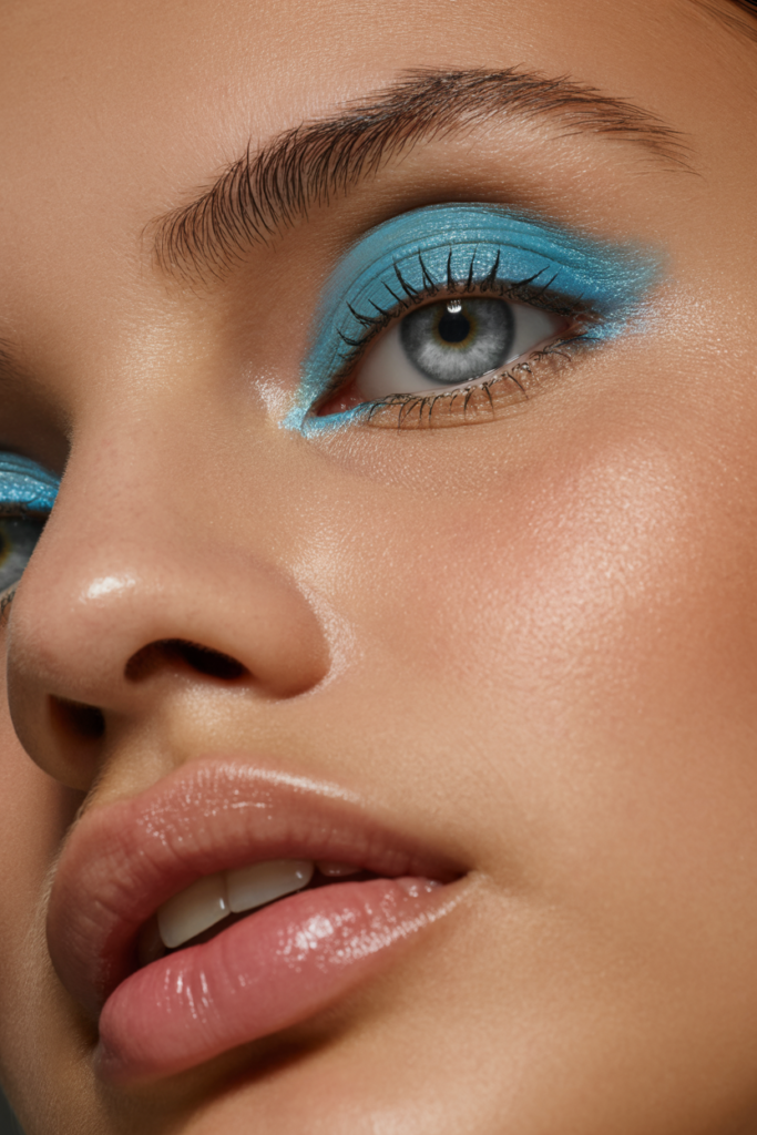 The goal is to make blue eyeshadow look intentional and modern, not like you accidentally time-traveled from a Christina Aguilera video shoot.